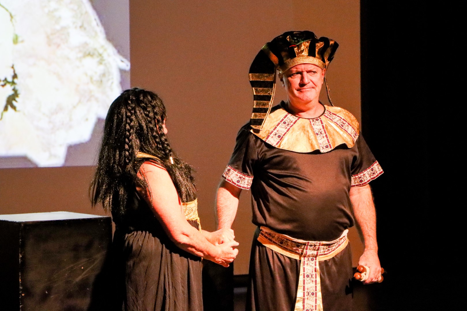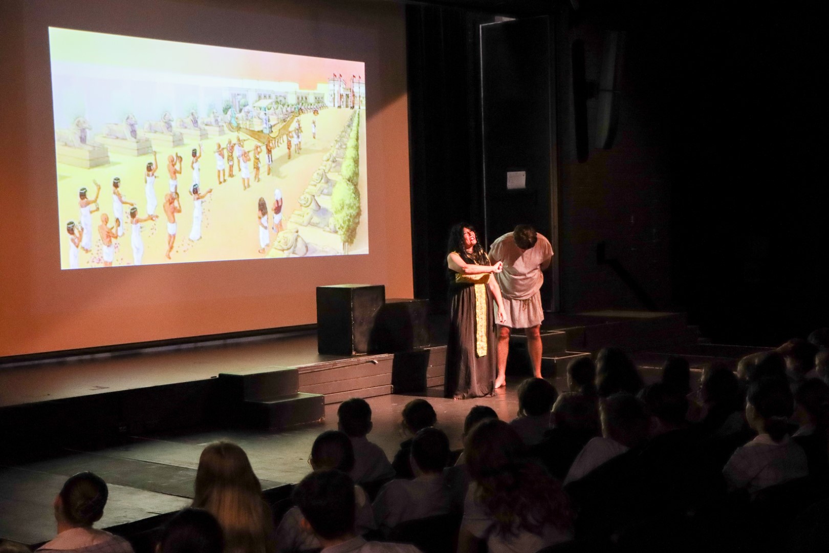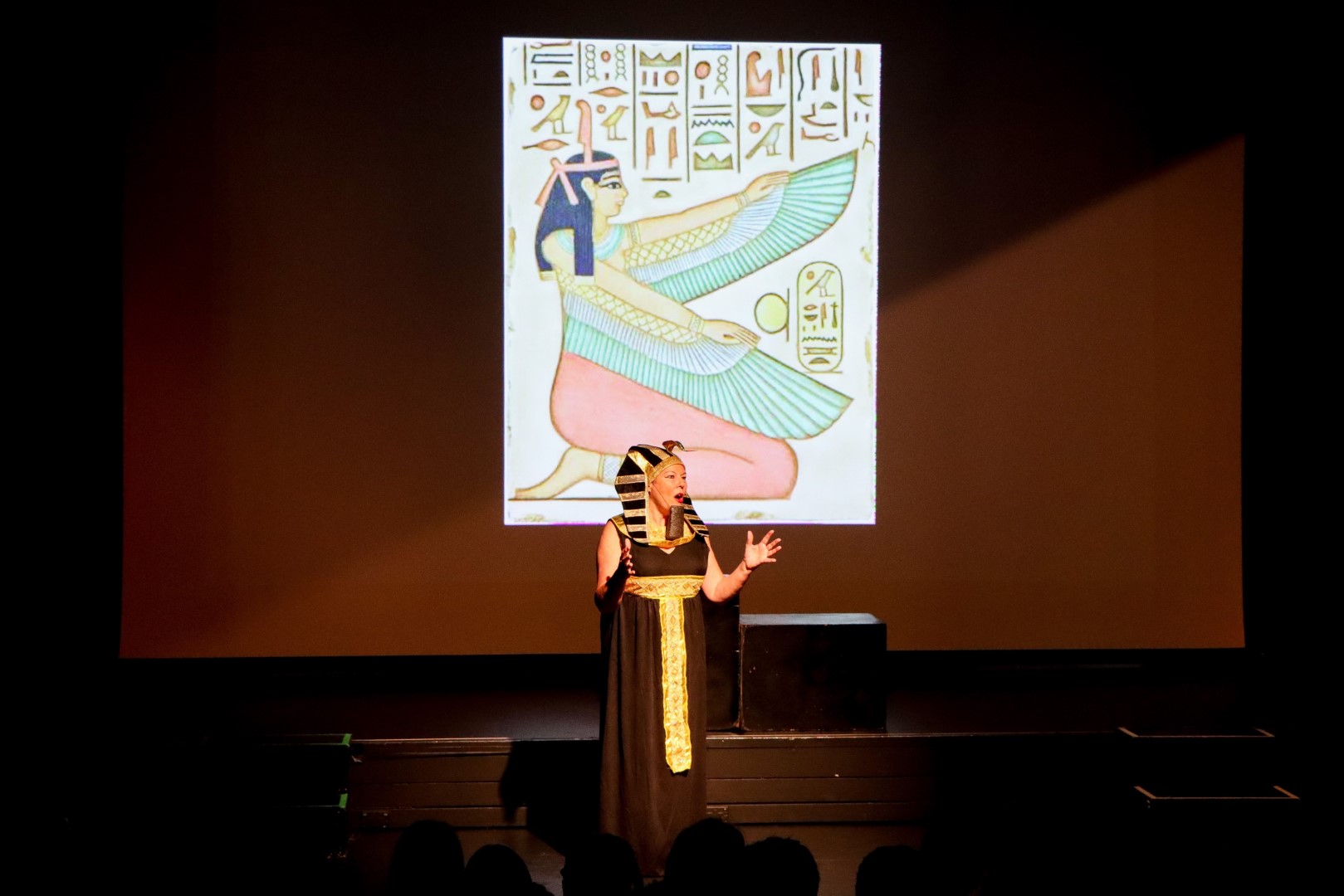 In Humanities, students have been investigating several different ancient societies including the Egyptian society. Students watched an entertaining performance on a unique perspective of ancient Egypt as told from Pharaoh Hatshepsut’s point of view. The performance portrayed how Hatshepsut, the fifth Pharoah of the eighteenth dynasty of Egypt ruled for 15 years. The students were engaged, interested, and participated throughout the performance.