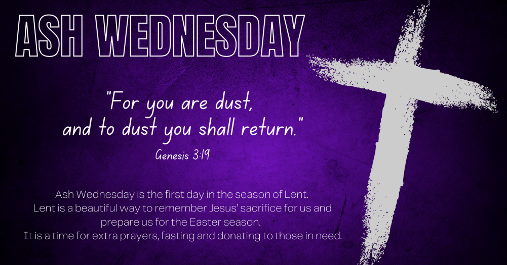 Ash Wednesday marks the beginning of the season of Lent, preparing us for Easter, the most important time in the Church’s calendar. The marking of the ashes on our foreheads or on our palms on this day is a public expression of our faith and humility. It is a time of prayer, fasting and almsgiving.