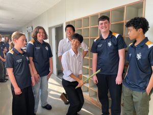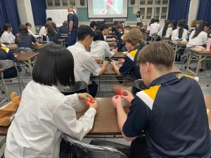 The group arrived at Takefu Higashi High School, SFX’s sister school in Echizen, after 24 hours of travel from Canberra. The group enjoyed a delicious obento meal during their journey and jumped right into English classes upon arrival, where they made origami cranes and ninja stars, and later took part in the school’s cleaning classes. The Year 12s also presented their research on social issue to our students as their test audience.