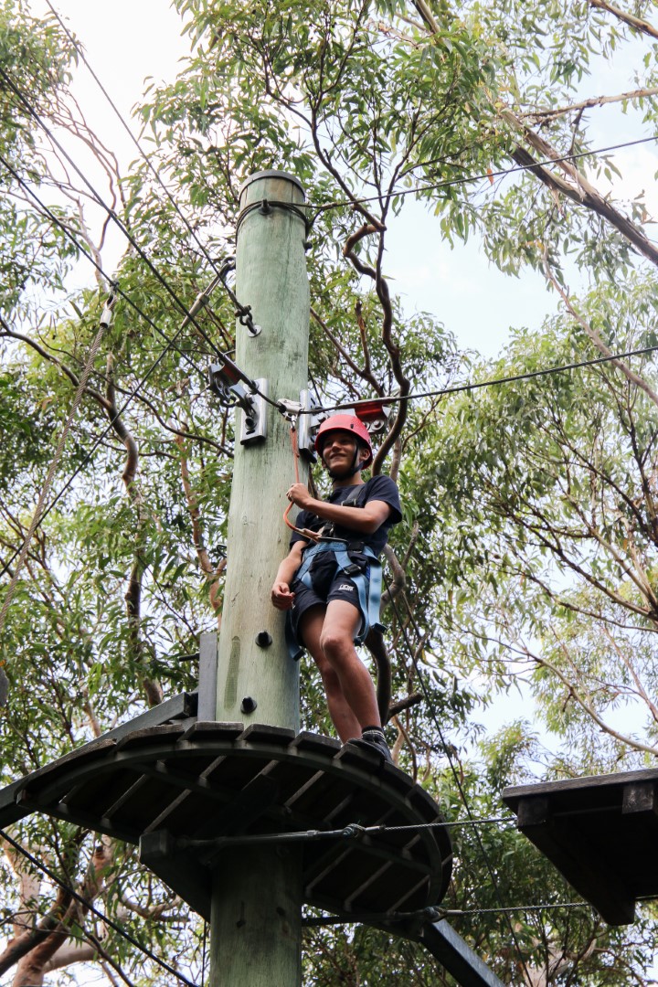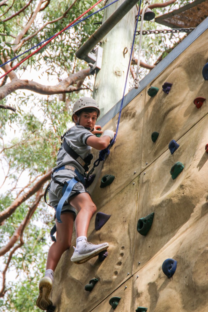 The second day started with a little bit of rain, but that cleared thankfully so Year 7 could hit the beach and attempt to ride the waves. Mr Charles showed some skills to cheers from the crowds. Students were also excited to try activities that their peers had tested the day before—this time adding high ropes and rock climbing to the challenges. It was great to see students starting to work with others from the cohort. One of our goals for this camp was to see the students start to build a positive community together. Teachers were very pleased to see this taking place.