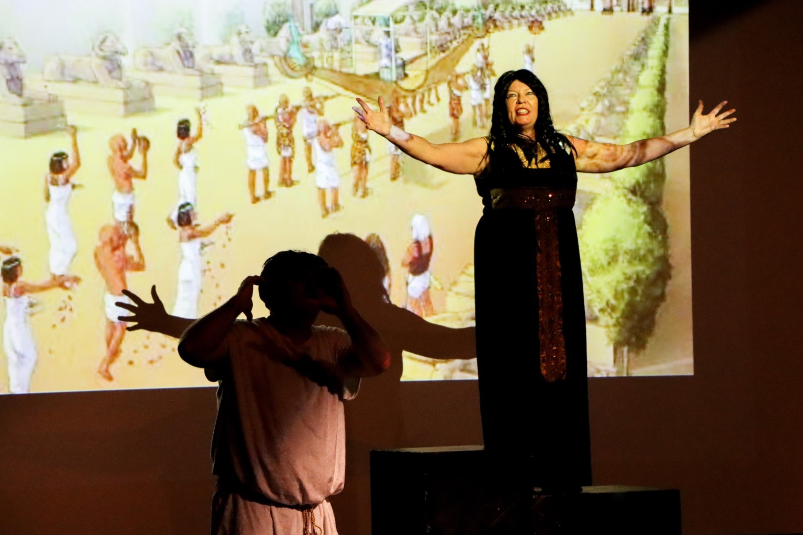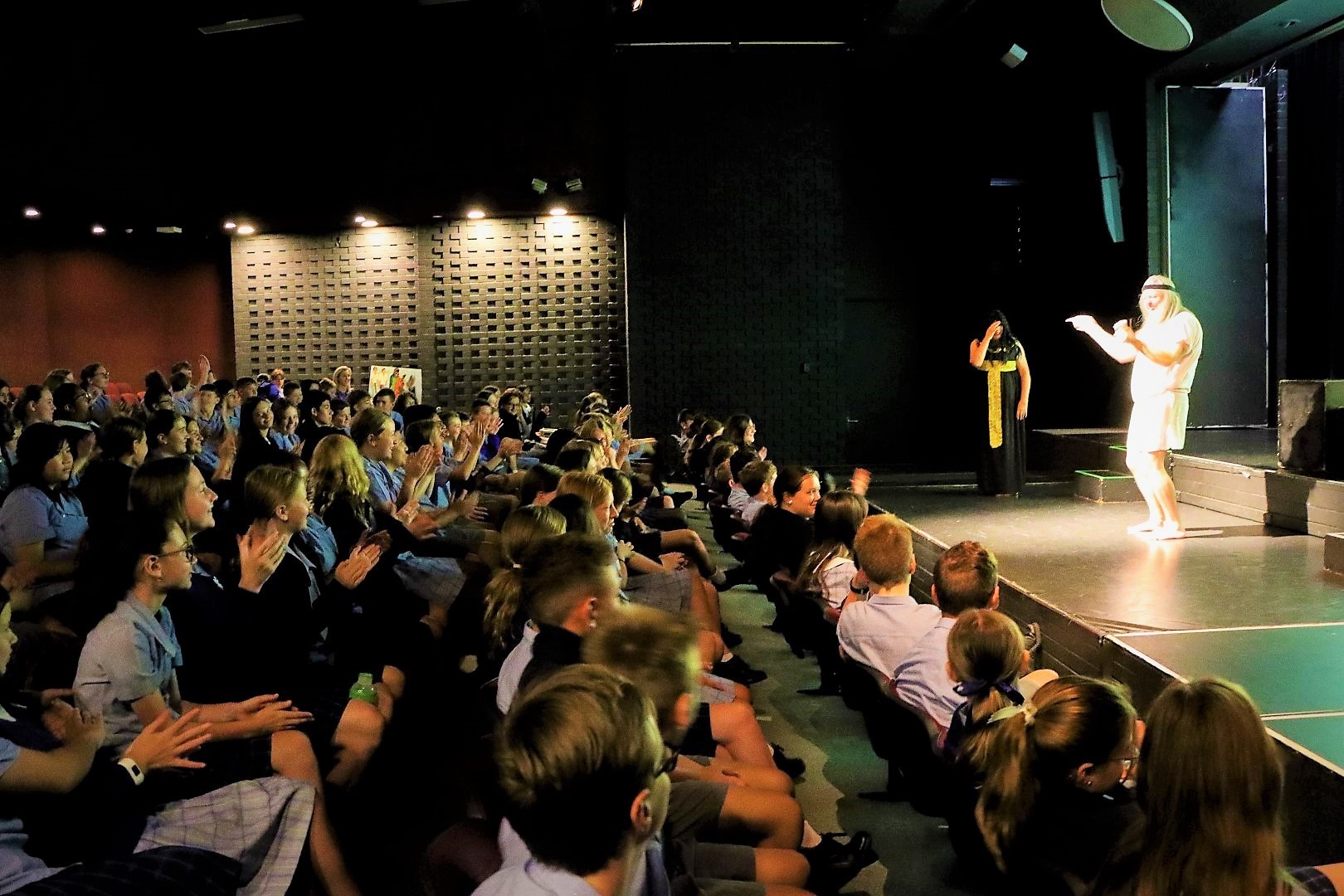 In Humanities, students have been investigating several different ancient societies including the Egyptian society. Students watched an entertaining performance on a unique perspective of ancient Egypt as told from Pharaoh Hatshepsut’s point of view. The performance portrayed how Hatshepsut, the fifth Pharoah of the eighteenth dynasty of Egypt ruled for 15 years. The students were engaged, interested, and participated throughout the performance.