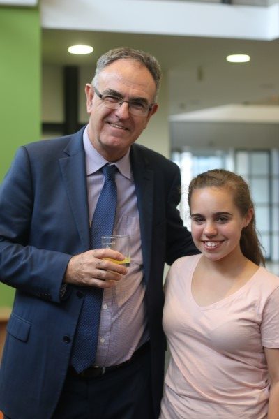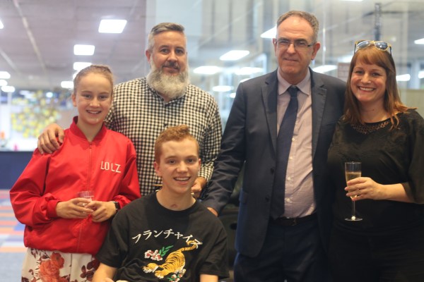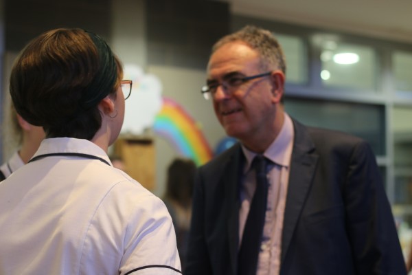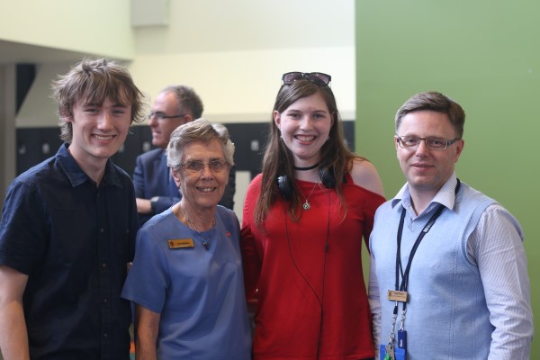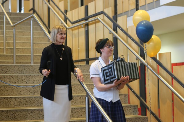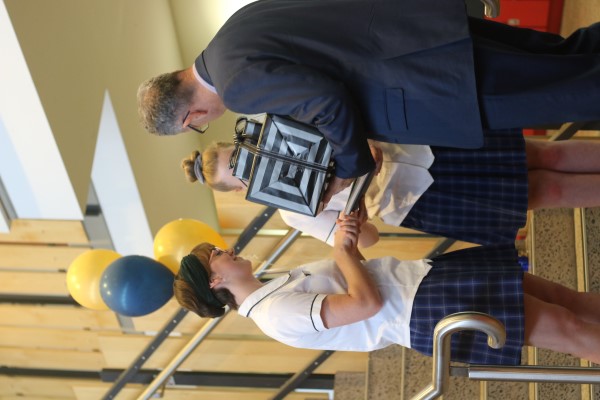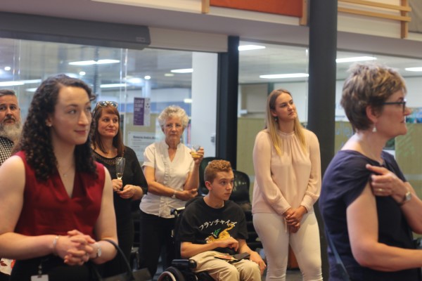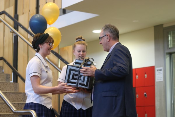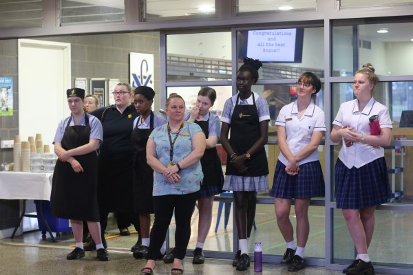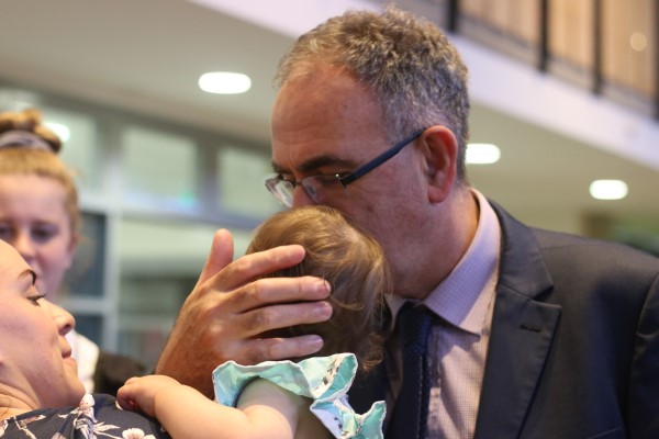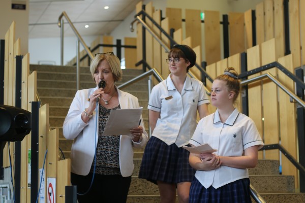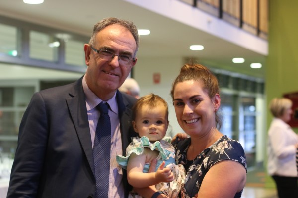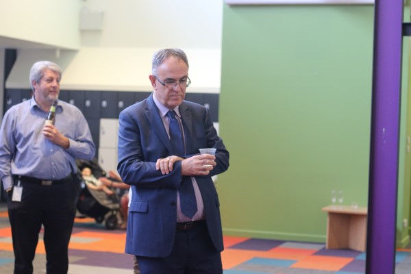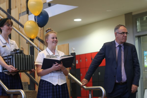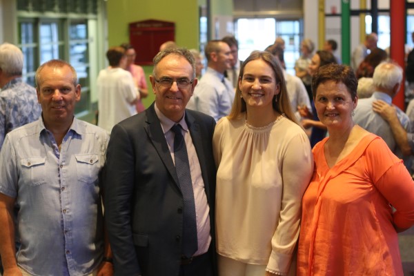 Around 200 people gathered in the hub to farewell Mr Tulley, including his family (wife Paula and children Dominic, Claire, Anna and Vincent and grandchildren). The crowd included staff, parents, former and current students.