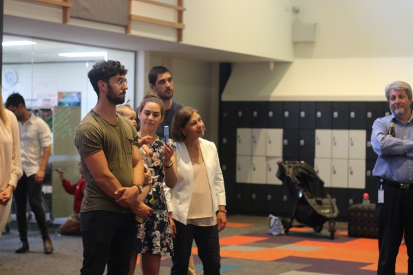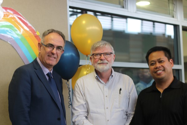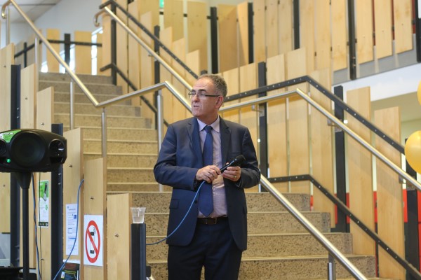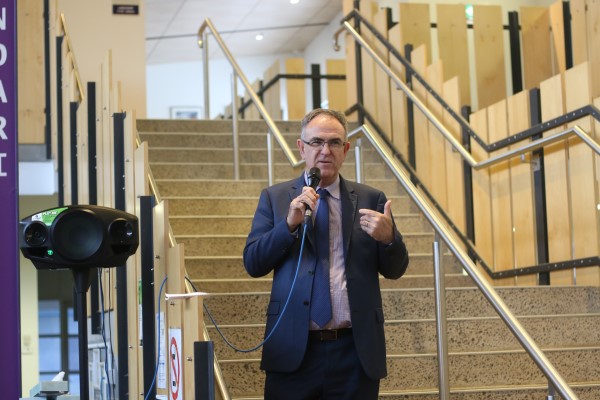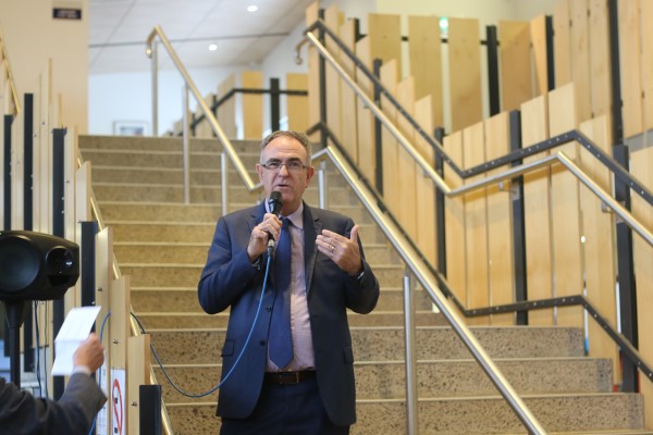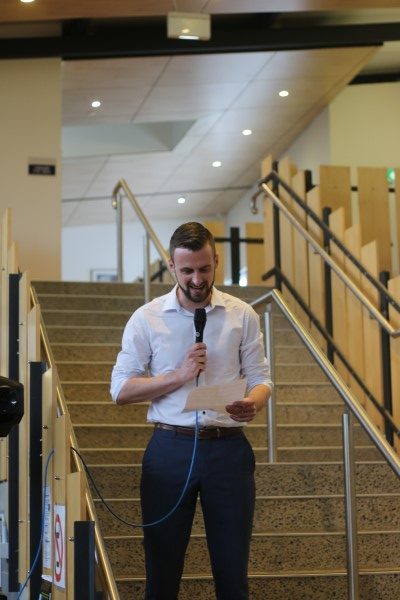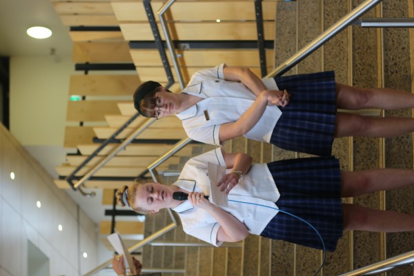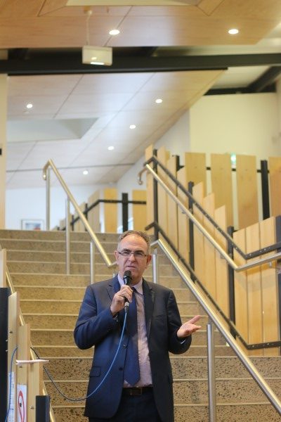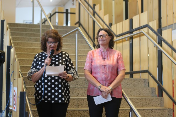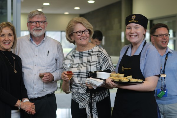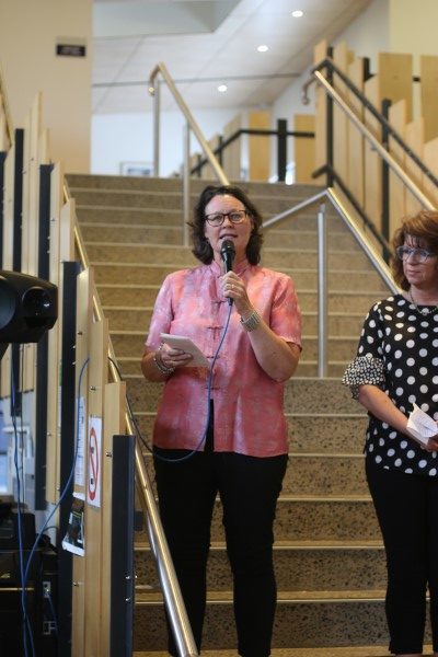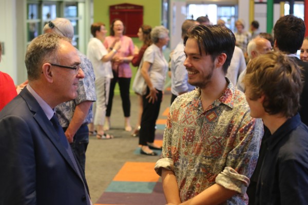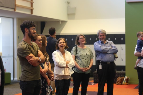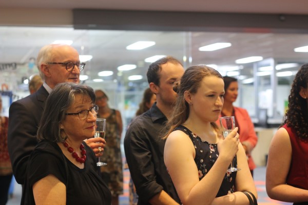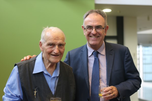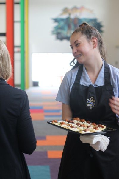 Around 200 people gathered in the hub to farewell Mr Tulley, including his family (wife Paula and children Dominic, Claire, Anna and Vincent and grandchildren). The crowd included staff, parents, former and current students.