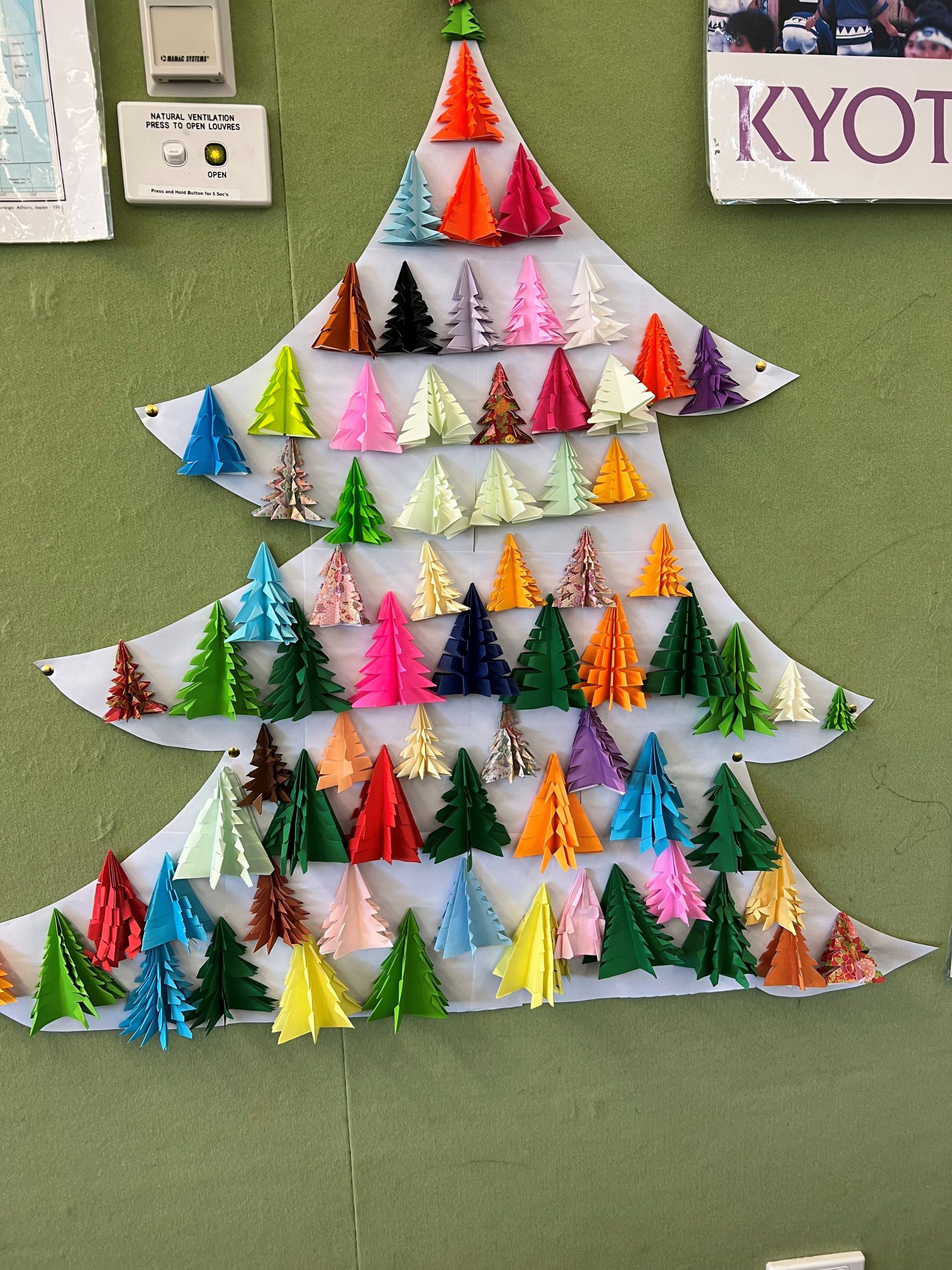 Year 7 students have enjoyed a variety of end of year activities in Japanese classes, using their knowledge of language and culture to engage in creative collaborations. The activities included onigiri rice ball making and decorating competitions, origami (paper folding) stars and kirigami (paper cutting) Christmas trees.