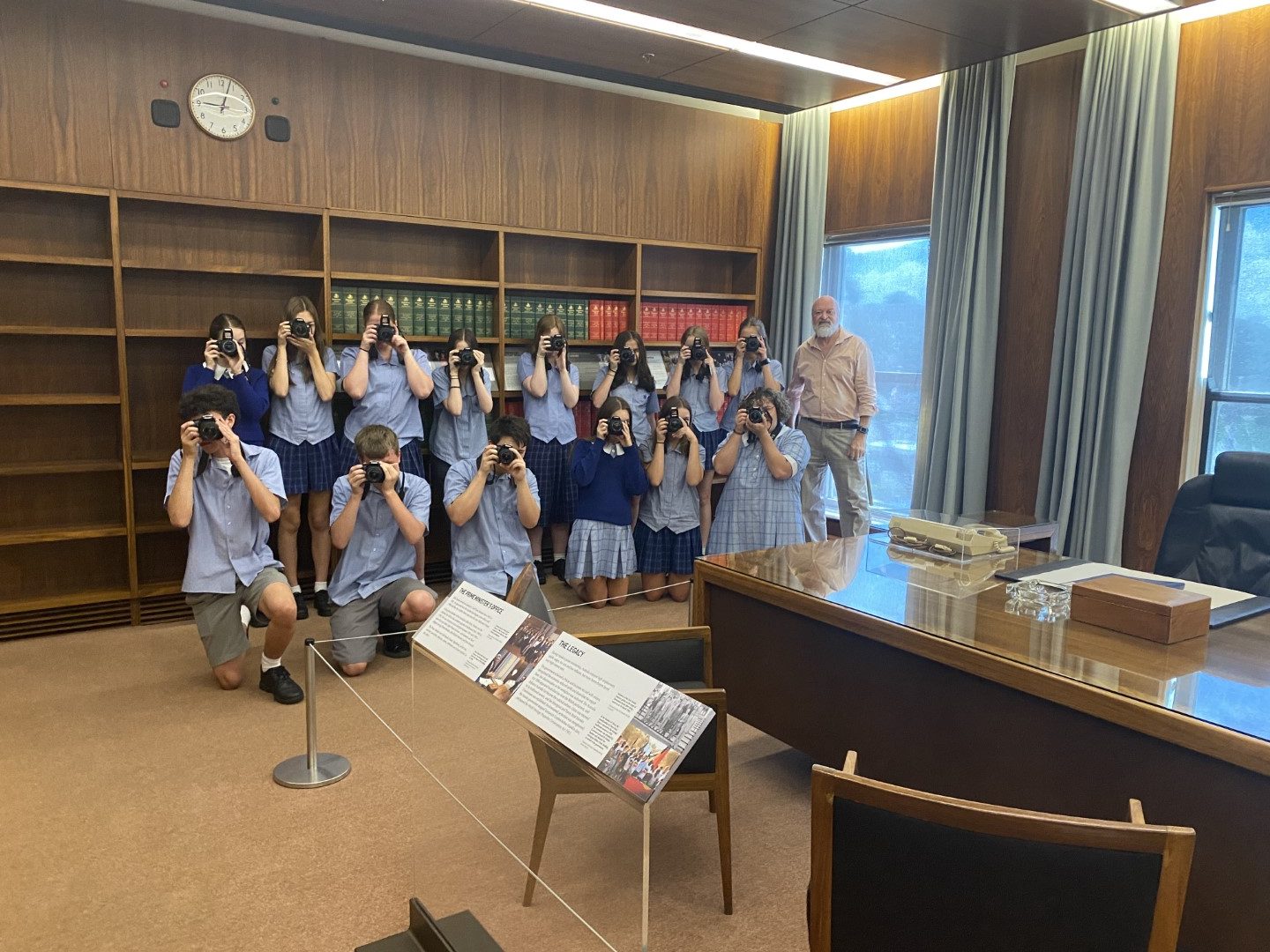 Last week our Year 10 photography class visited the Museum of Australian Democracy (MOAD) at Old Parliament House to work on their digital photographic image capture skills. We ventured inside for some time, looking at all of the details of the building including the Prime Ministers’ office and the House of Reps chambers before heading outside to capture the exterior of the building and the rose gardens.