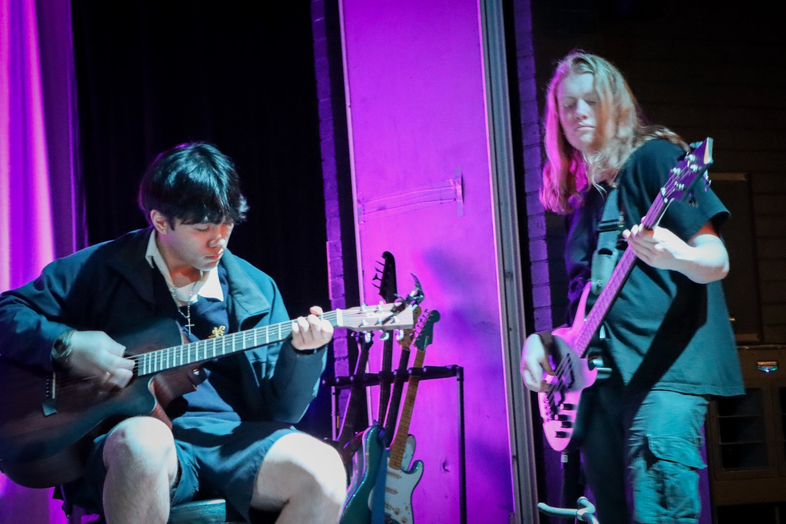 The Senior Music Concert took place on the evening of Wednesday 10 May 2023. This concert contained an eclectic variety of Music, from Chopin through to Wolfmother, and students were afforded an opportunity to showcase their skills to their families. The evening surprisingly concluded with a set of pieces from Jamiroquai, despite not being a focused artist in the unit. The Music students have been inspired by the odd uses of rhythms and chord extensions which the performing students handled with flair. The students offered amazing support by performing for other musical items, especially Sabrina Orellano, Ethan Hunt, Mark Cheah, Lucca Paini, Lachlan Mace, Raziel Colina-Alcazar, Ethan Hunt, Walter Nielsen, and Patrick Hose. Paige Killaby from Year 9 also deserves a special mention for singing with one of the senior performance groups on the night.