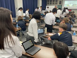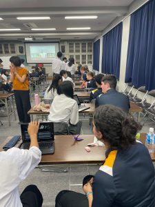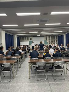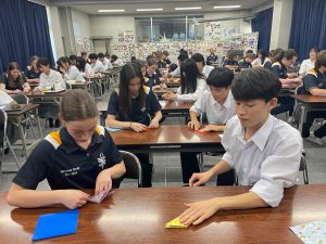 The group arrived at Takefu Higashi High School, SFX’s sister school in Echizen, after 24 hours of travel from Canberra. The group enjoyed a delicious obento meal during their journey and jumped right into English classes upon arrival, where they made origami cranes and ninja stars, and later took part in the school’s cleaning classes. The Year 12s also presented their research on social issue to our students as their test audience.