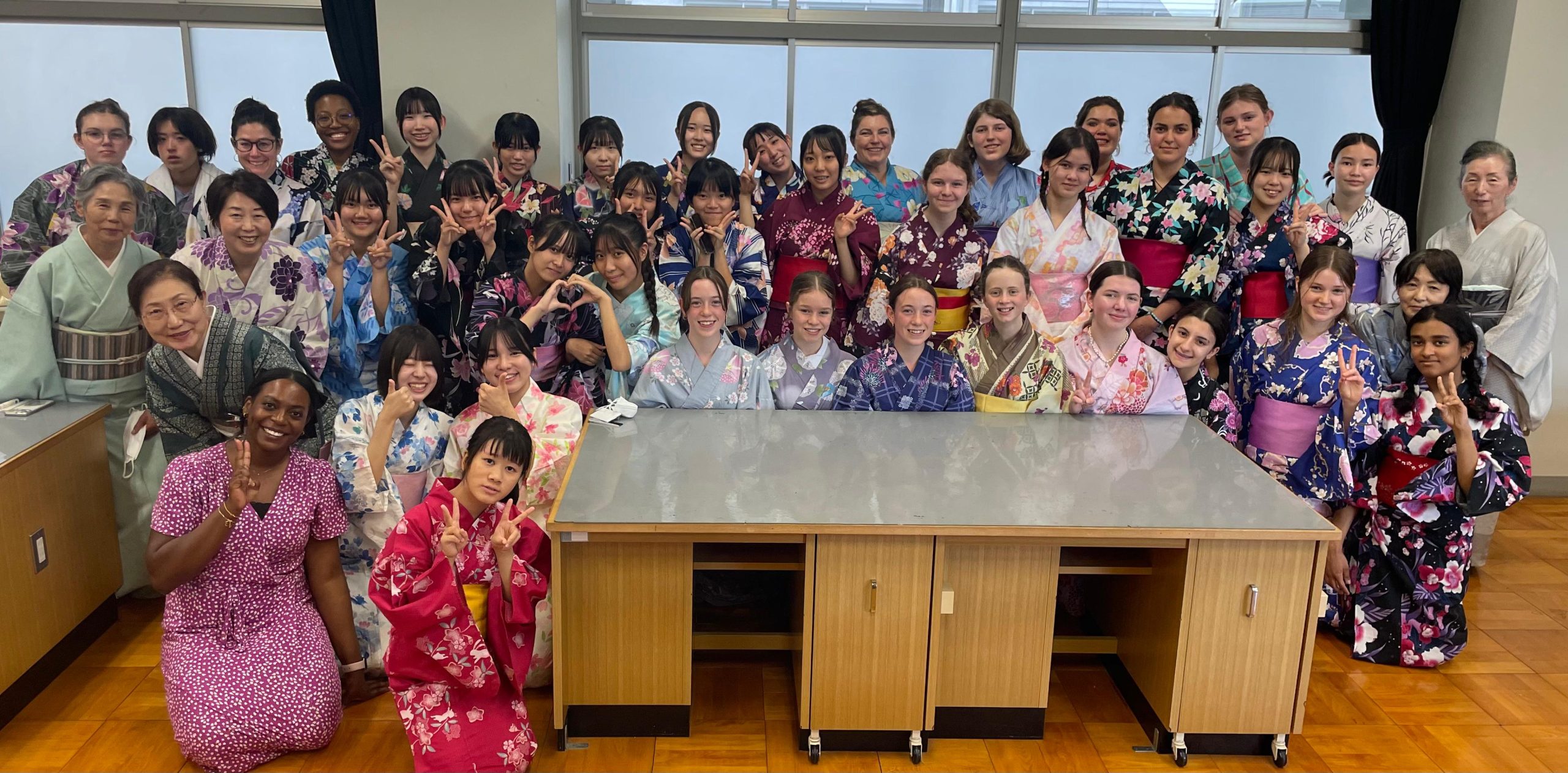 On Day 2, our students participated in the World Happiness Forum, where youth around the world gathered both in person and online. They also listened to a keynote about sport as a microcosm of society reflecting changing social issues. The day continued with dressing up in colourful yukata and a tea ceremony, making the most out of their time with their new friends from Takefu Higashi.