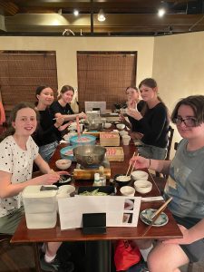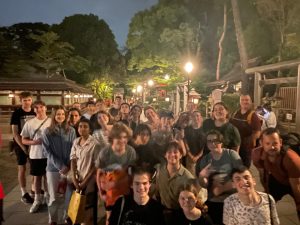 Students then continued their trip to Hiroshima and Miyajima Island, interacting with deer, visiting the iconic Itsukushima Shrine with is floating Shinto Torii gates and admiring the five-story pagoda. The day ended with karaoke after a delicious okonomiyaki dinner.