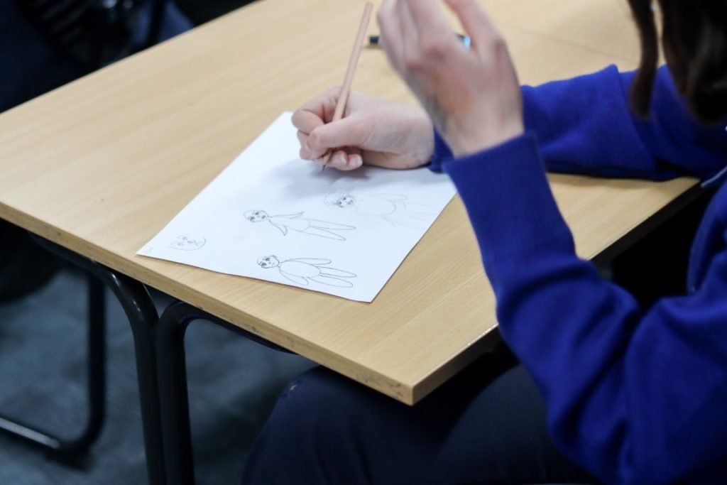 As a feature of our Year 8 Japanese program, students participated in an exciting Manga Japanese comic workshop on 29 August with Victorian-based, published, freelance Manga artist, Kenny Chan. Our students enjoyed Kenny Chan’s very immersive artistic workshop and his entertaining visual demonstrations of what changing visual features can do to imbue characters with personality and emotion. We learnt that a long nose could add age to a character, that the eyes are where humans focus most, which means that manga characters usually feature large, expressive eyes, but have less detail for other facial features. We learnt that a smaller head could create bulk in a character’s appearance and that a louder or quieter character would have a larger or smaller mouth respectively. We learnt to reverse capital C and J together and in reverse to create instant ears on a character and that drawing is as simple as potato and carrot shapes!