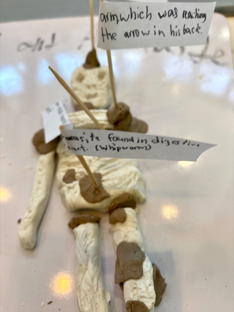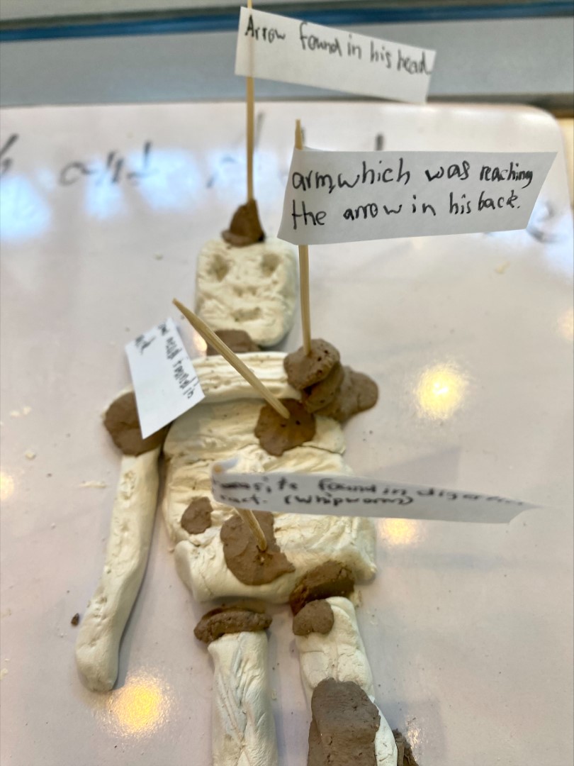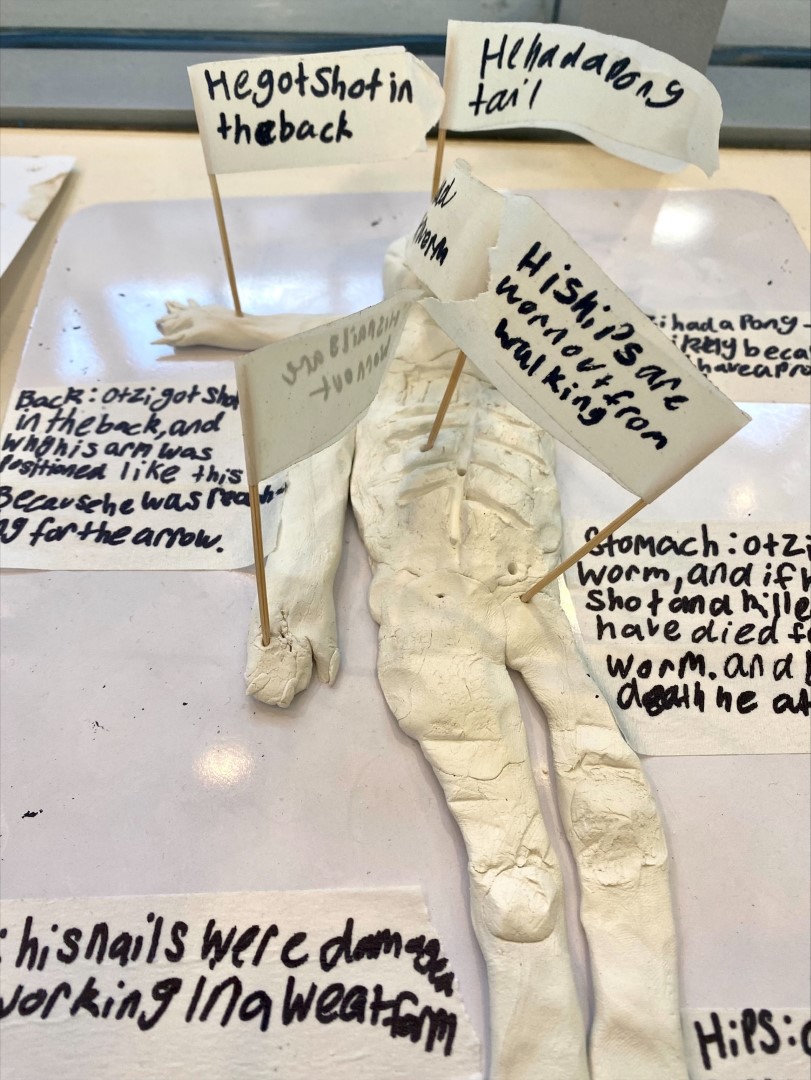 Mrs Patterson’s Year 7 Hums students joined with Mr Beattie’s Year 7 STEM students recently to create labelled sculptures of ‘Ötzi the Iceman.’ He is considered Europe’s most famous mummy and his remains were found in a glacier in the Alps. Ötzi had been there for over 5,000 years. This discovery revealed details of his Neolithic life and his potential murder. Students have been learning to think like historians, discussing different theories of Ötzi’s death and considering the evidence. They have then had to form hypothesis about his death, explaining their reasoning.
