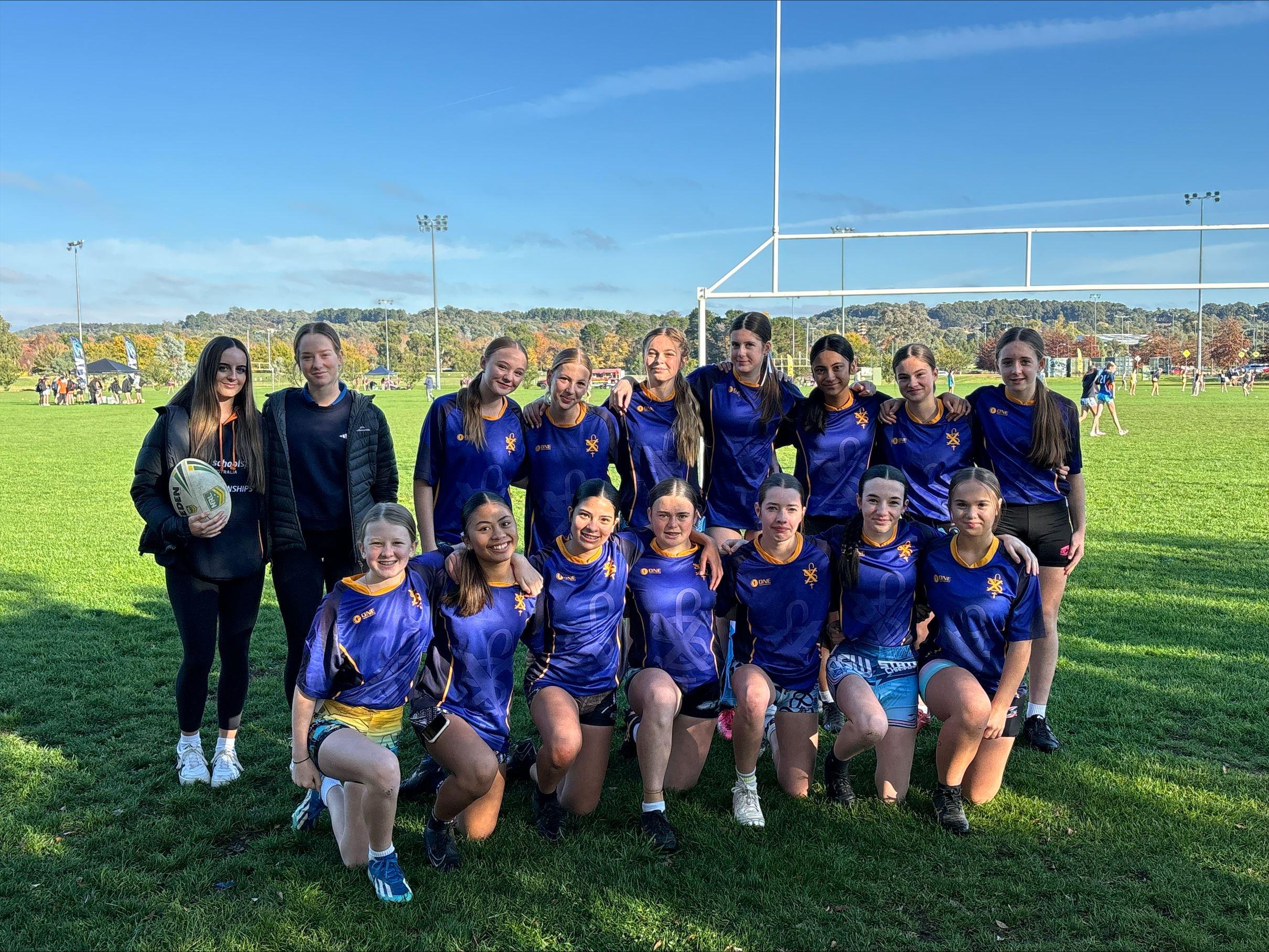 On the following day, we sent out our Year 7, 8, 9 and 10 girls to Oztag day. The 7/8 team showcased an exceptional performance in the recent Oztag carnival. Their journey through the competition was marked by consistent victories in each round game, demonstrating their skill, teamwork, and determination. Their offense was relentless scoring 24 tries in the round games whilst only conceding 3 goals in defense.