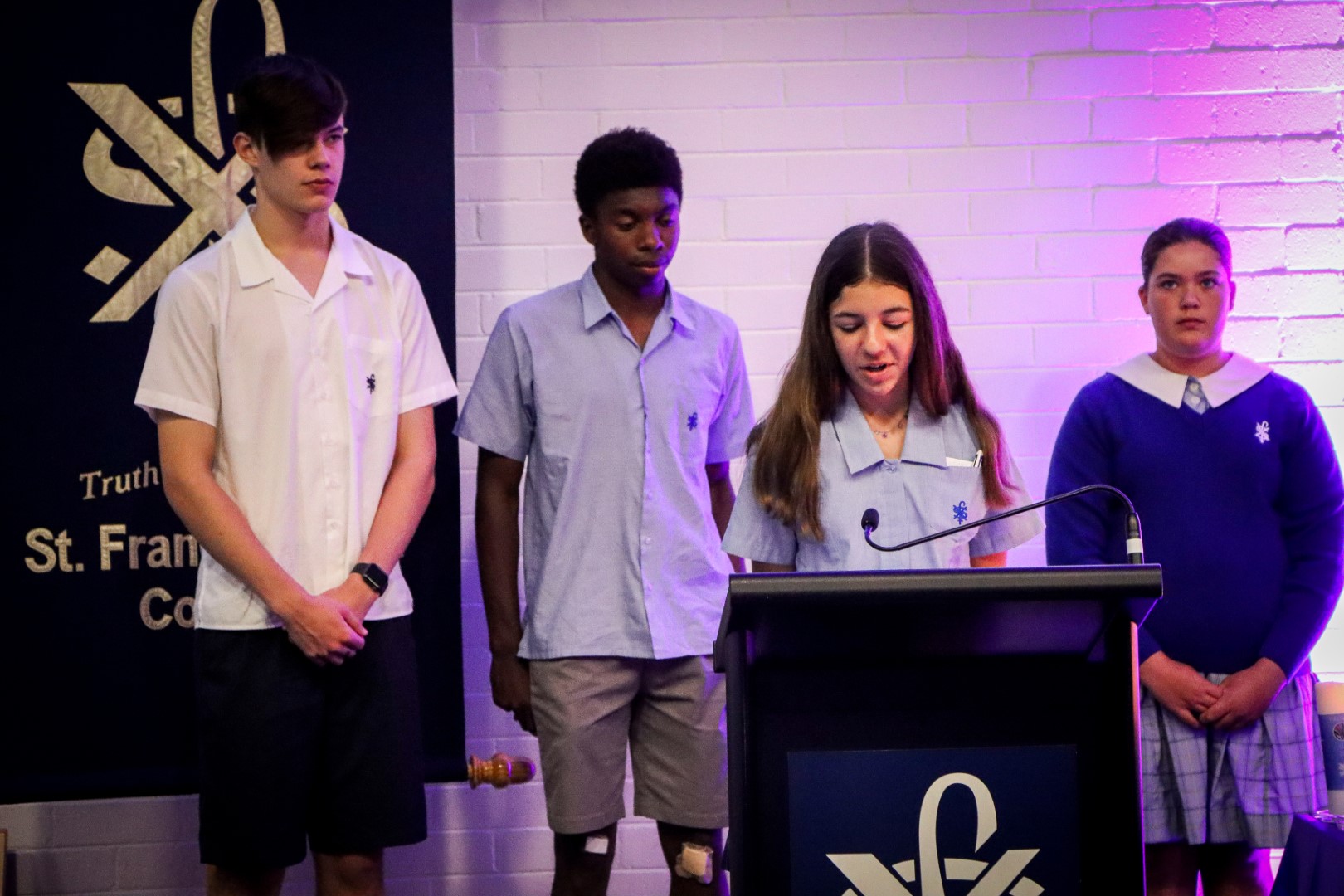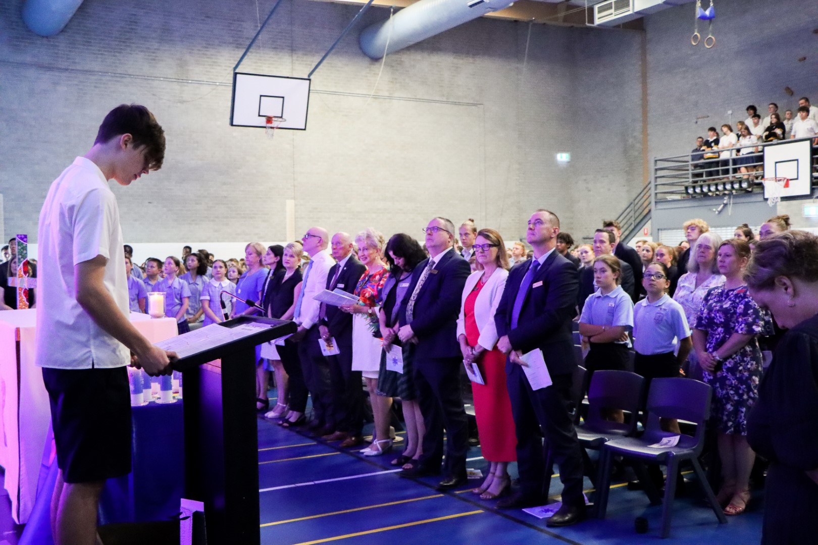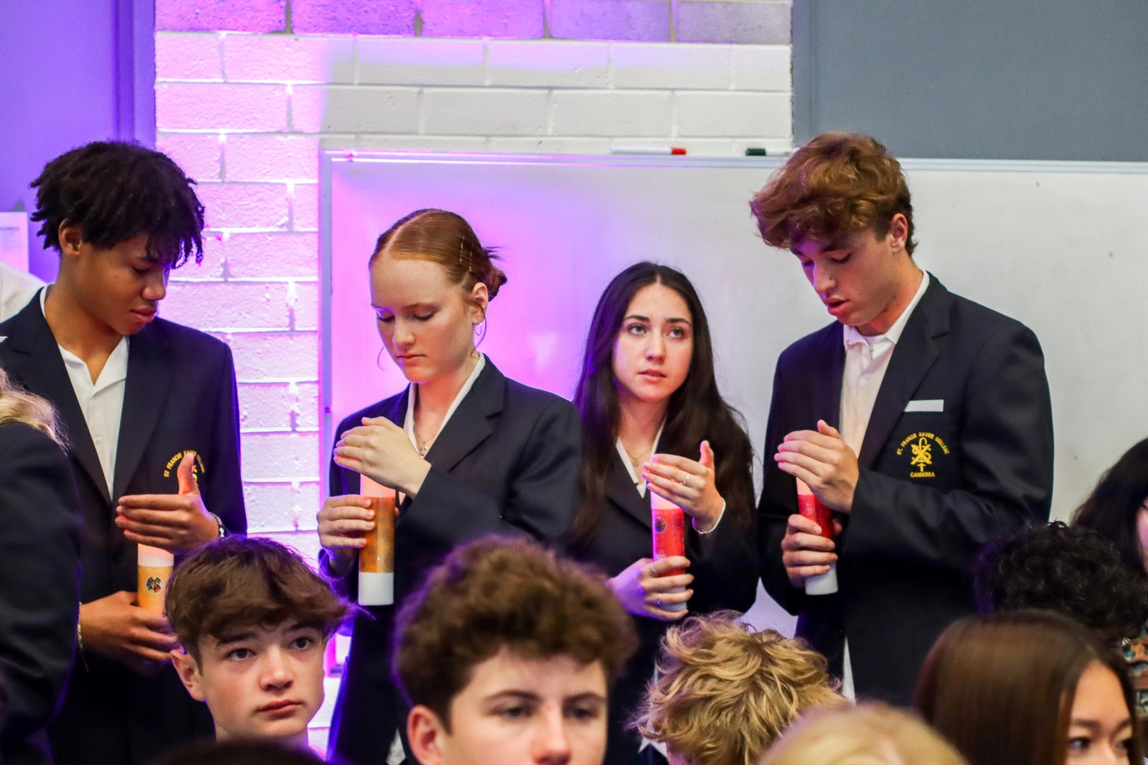 We thank our special guests for joining us for Mass and morning tea afterwards—Fr Simon Falk, Fr Mick MacAndrew, Peter Cain MLA, Jo Clay MLA, representatives from Catholic Education, Daramalan College, St John Paul II College, St Clare’s College, Merici College, St Matthew’s Primary, St Thomas Aquinas Primary, St Monica’s Primary, Ngunnawal Elder Joel Bulger, musicians Edward Neeman and David Pereira from the Canberra School of Music and parents of our SLT.