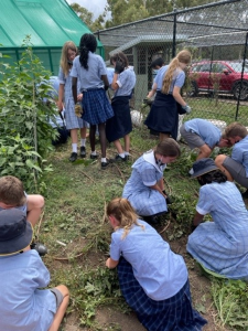 The seeds represent the new beginning of their journey in Secondary school at SFX. They have been working in teams to create small planting tubs to protect the seeds from the weather and then they will nurture them to full growth later in the year. They all finished off doing a little weeding in the garden beds.