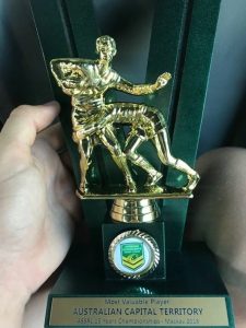 He was selected as man of the match v Queensland and was also awarded the Most Valuable Player for the tournament for the ACT!