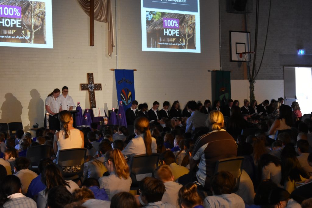 The beginning of Lent was emphasised with a very reverent and prayerful liturgy in the gym last Wednesday. The students were provided with a running commentary on the purpose and meaning of Ash Wednesday and the distribution of the ashes.