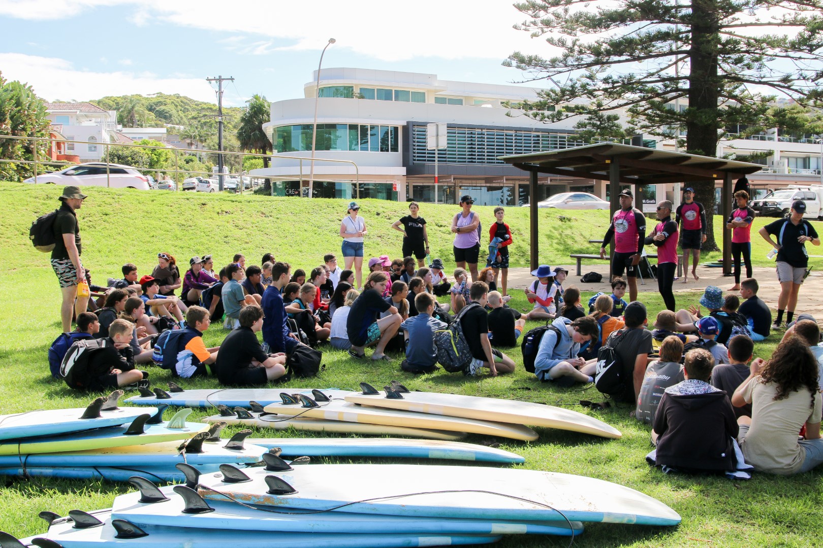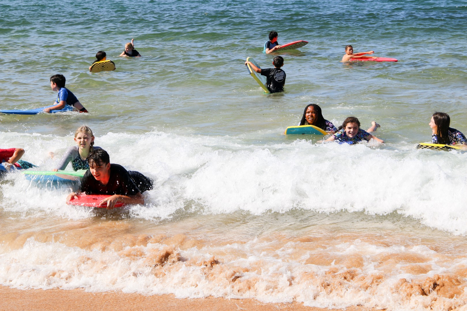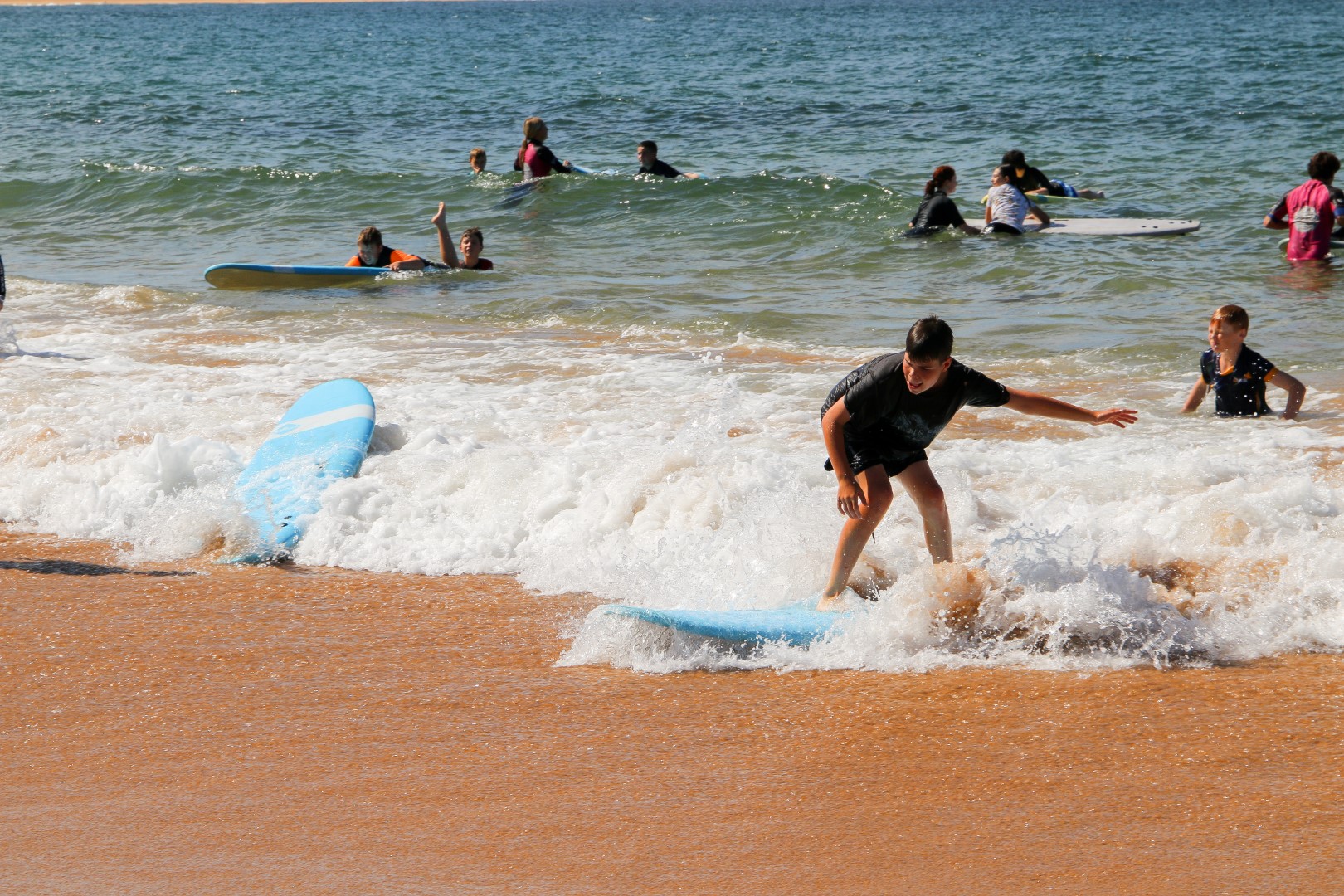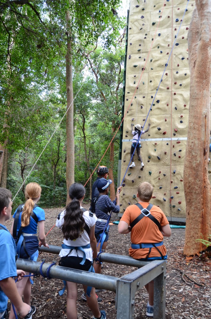 The second day started with a little bit of rain, but that cleared thankfully so Year 7 could hit the beach and attempt to ride the waves. Mr Charles showed some skills to cheers from the crowds. Students were also excited to try activities that their peers had tested the day before—this time adding high ropes and rock climbing to the challenges. It was great to see students starting to work with others from the cohort. One of our goals for this camp was to see the students start to build a positive community together. Teachers were very pleased to see this taking place.