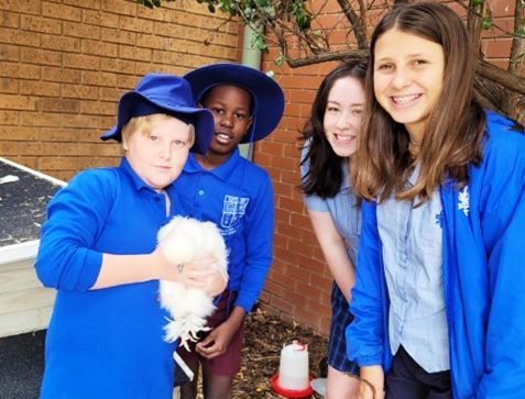 Every two weeks a group of Year 9 students head across the road to visit the younger students at St John the Apostle (SJA) to work with them on a variety of sustainability initiatives. SFX students work alongside the SJA Sustainability group to improve the garden beds, compost, look after the plants and take care of the school chickens.